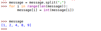 La liste message est bien une liste d'entiers. La fonction len(message) permet ici d'évaluer la taille du message.