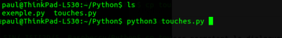 Le module curses va nous permettre de mieux gérer les intéractions avec l'utilisateur. Saisir le programme suivant qu'on pourra appeler touche.py permettra de mieux appréhender son fonctionnement :