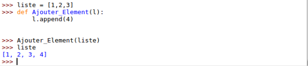 Les listes sont des éléments modifiables, on peut modifier leur contenu dans la fonction.